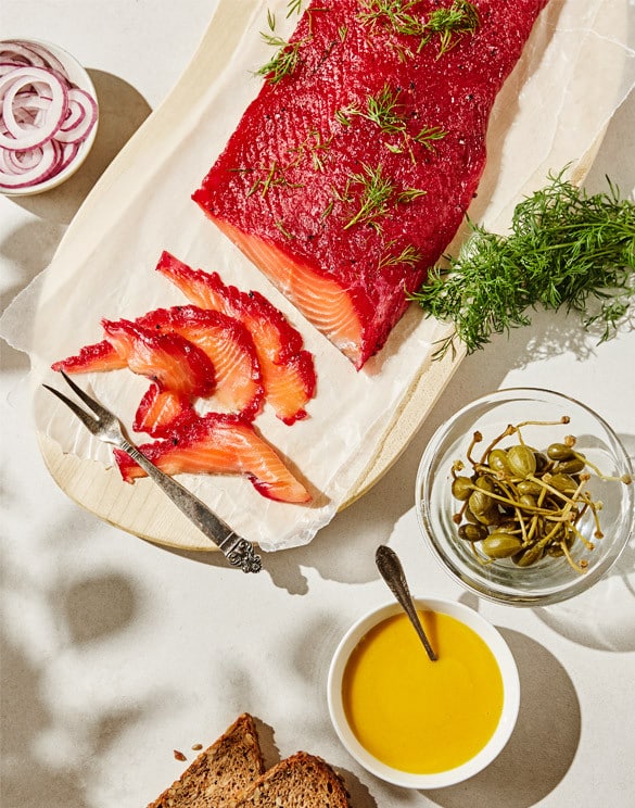 Gravet laks hører med til koldtbordet. Prøv vår oppskrift på rødbetgravet laks med en nydelig sennepssaus til neste koldtbord. Den røde fargen gjør seg ekstra godt både til jul og 17. mai! Server rødbetgravet laks med rugbrød, frisk dill, kapers og rødløk.